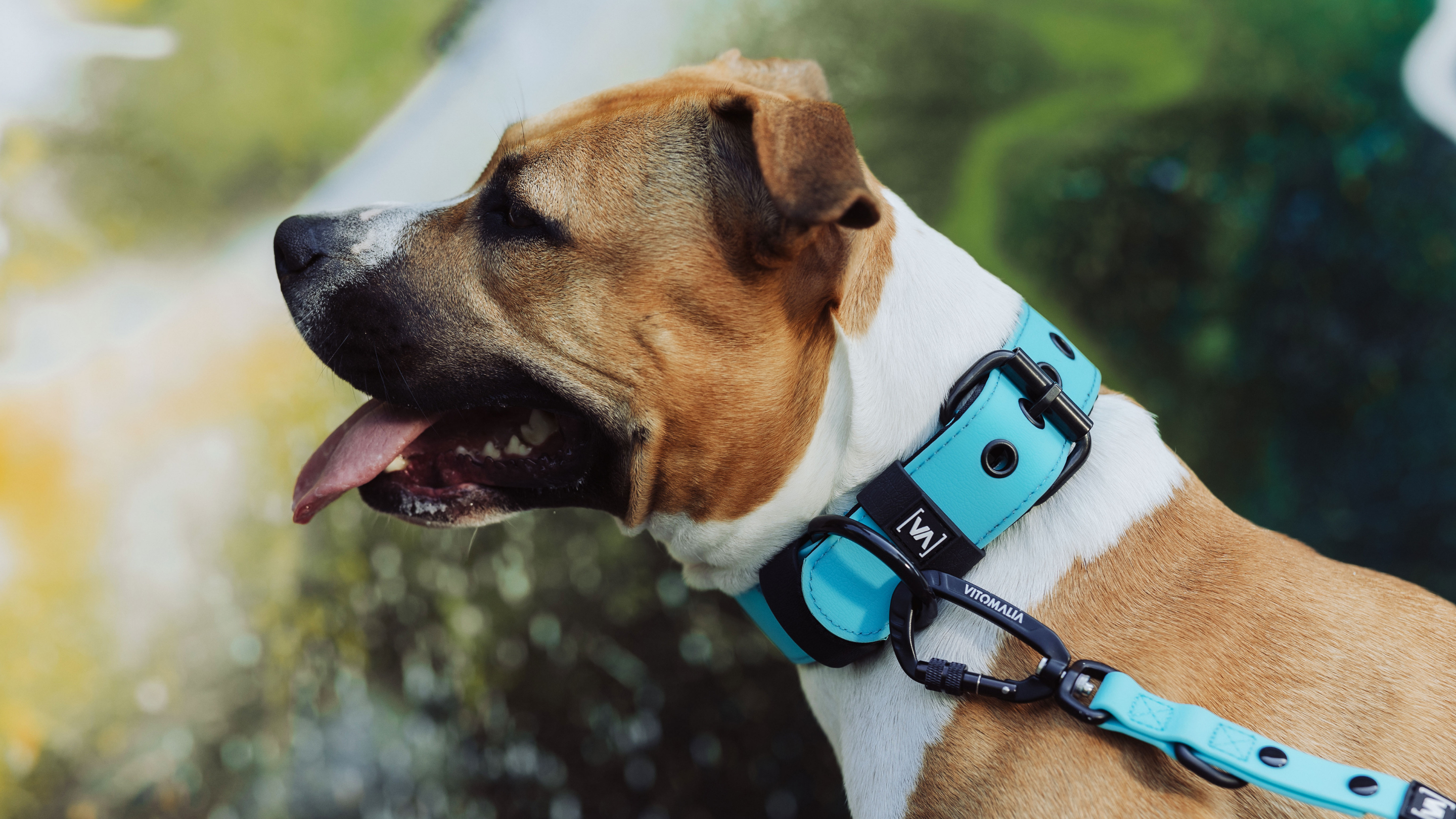The Aqua Edition Turquoise Set from Vitomalia is perfect for active dogs who love water. This set consists of a waterproof Collar and a 2.2 metre long, three-way adjustable Leash - both in a fresh turquoise colour, ideal for adventures in any environment.