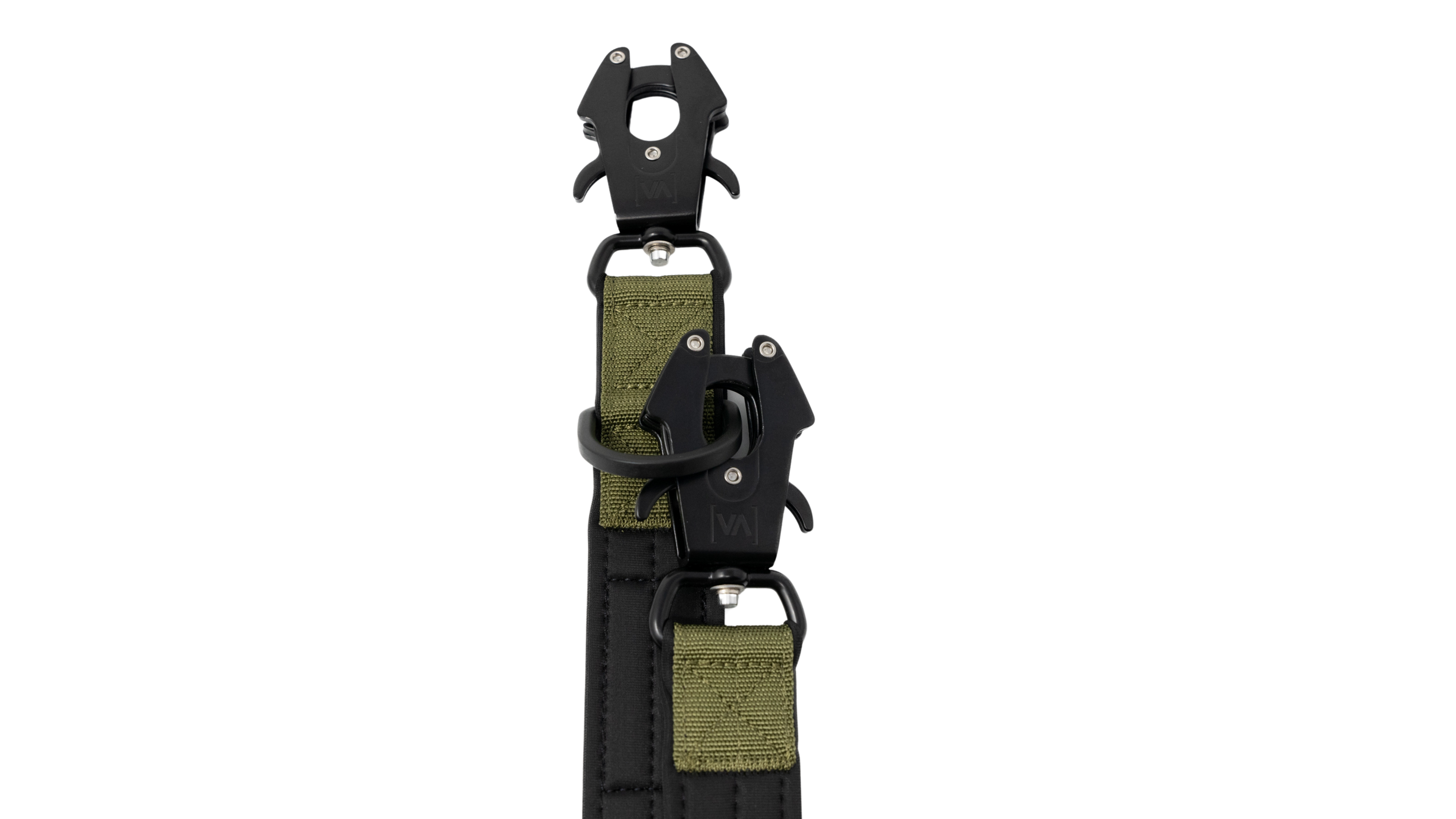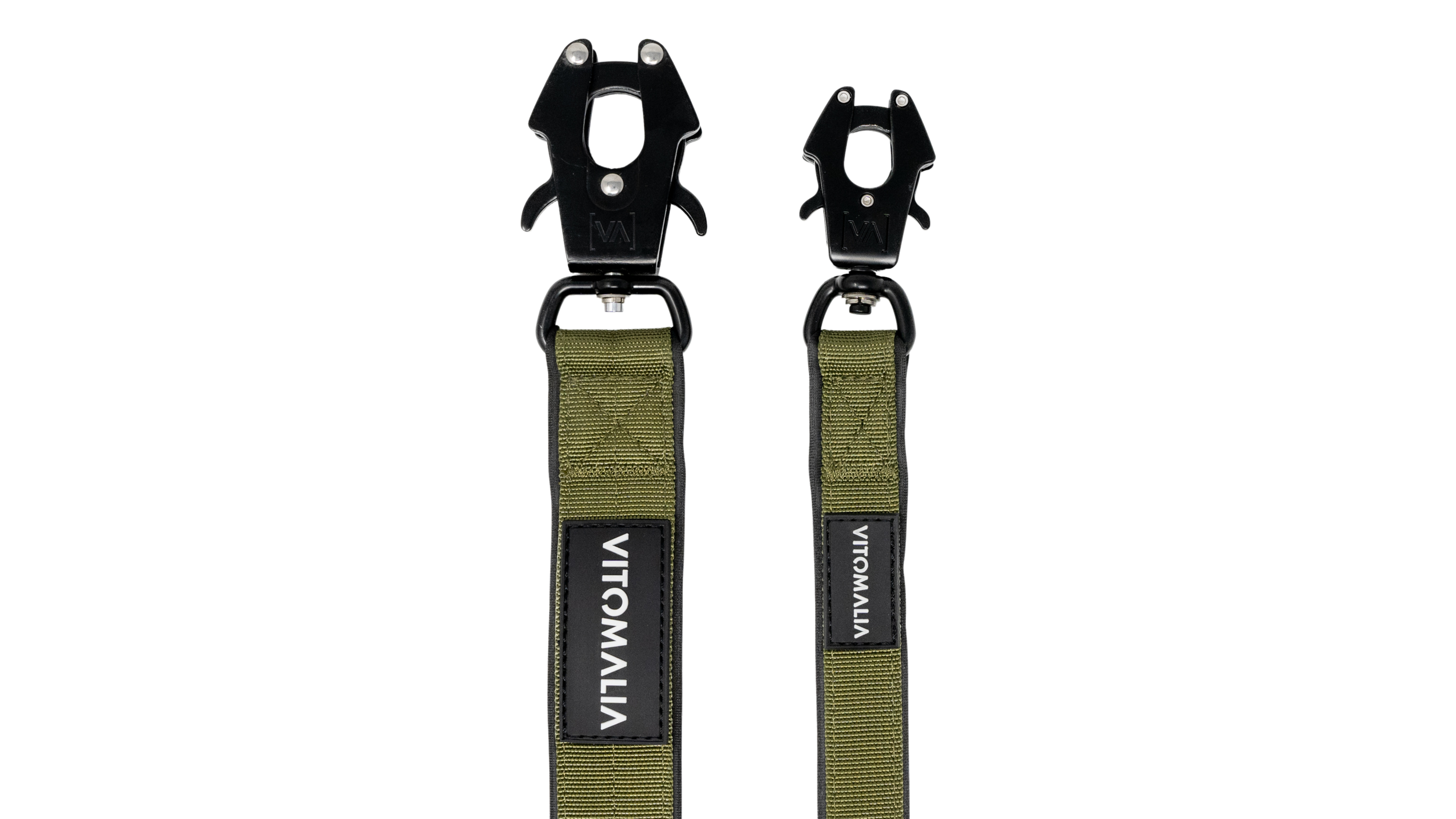 Rozmiary karabińczyków są zoptymalizowane pod kątem odpowiedniej szerokości smyczy i są wygodne do trzymania - nawet podczas dłuższych spacerów lub sesji treningowych. Czarna powłoka proszkowa nadaje Smycz wysokiej jakości wykończenie. Zarysowania spowodowane użytkowaniem są wizualnie możliwe, ale nie wpływają na funkcjonalność ani stabilność.