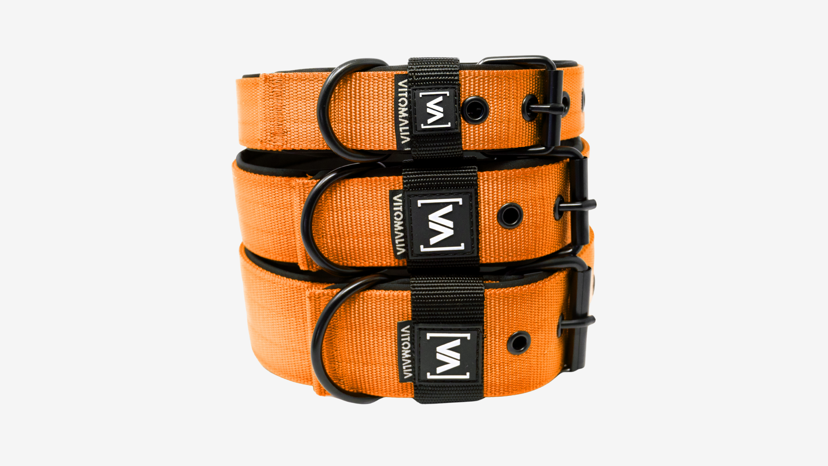 Le Classic Nero Edition Orange Set de Vitomalia allie un design remarquable à une qualité durable pour les chiens actifs et les propriétaires soucieux de leur style. Ce set, composé d'un Collier marquant et d'une Laisse de 2,2 mètres de long, réglable sur trois positions et de couleur orange vif, est parfait pour une utilisation quotidienne et pour les aventures en plein air.