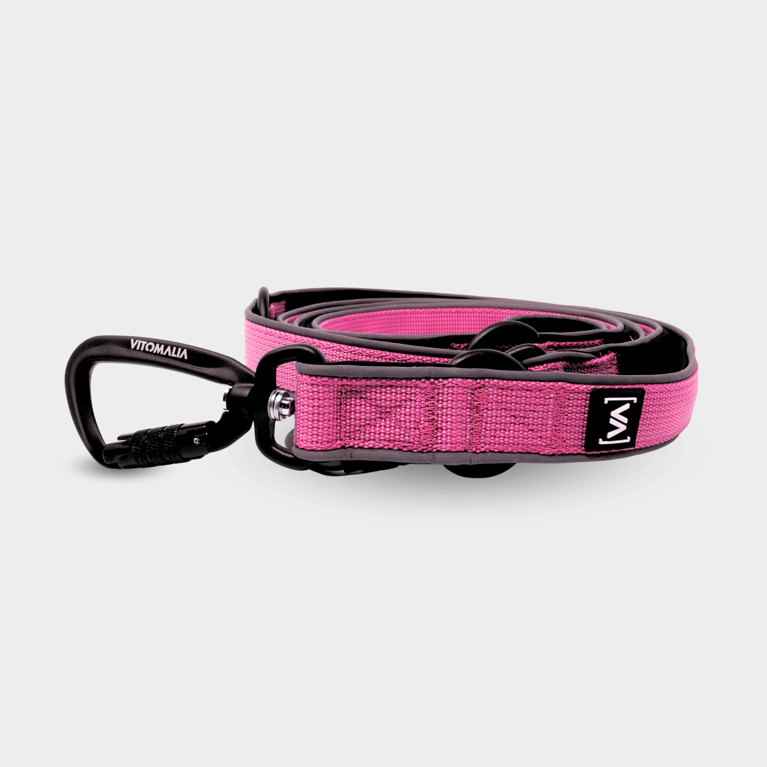Leichte Hundeleine mit Reflextionsstreifen und Sicherheitskarabiner in Pink: 3-fach verstellbar - Easy Go Edition - Vitomalia - Hundeleine Easy Go Edition