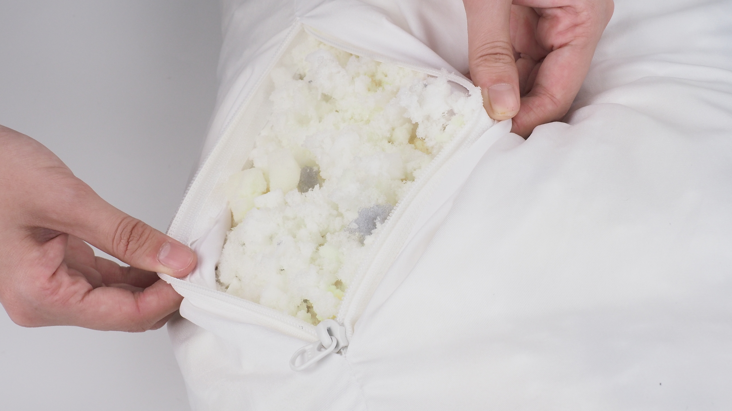 Mélange spécial de flocons de viscose et de mousse froide dans tout l'oreiller.