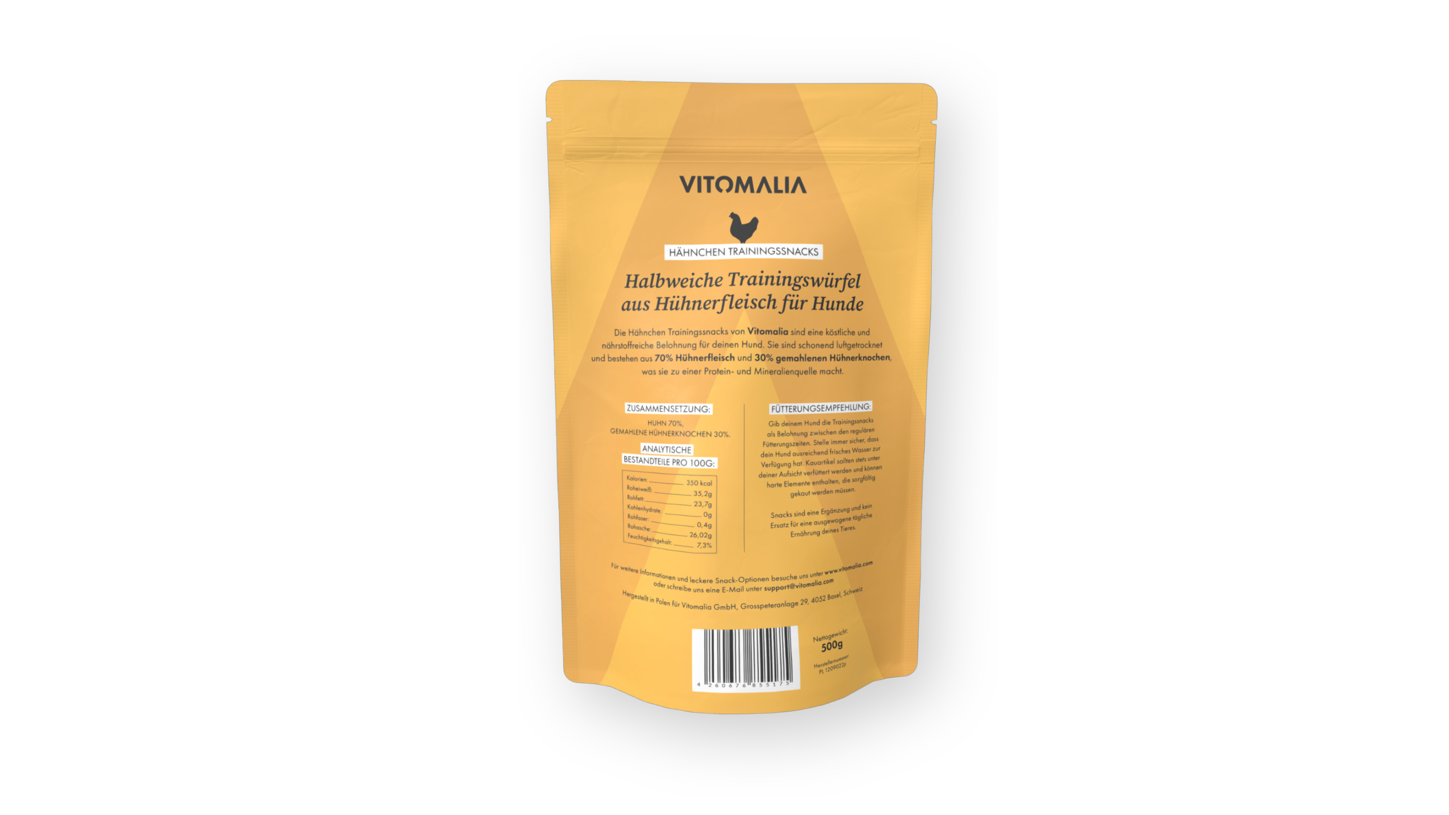 Que ce soit pour les chiots, les adultes ou les seniors, avec les Friandises d'entraînement Vitomalia, tu récompenses clairement, consciemment et avec une grande qualité. Entraînement avec système, récompense avec responsabilité.