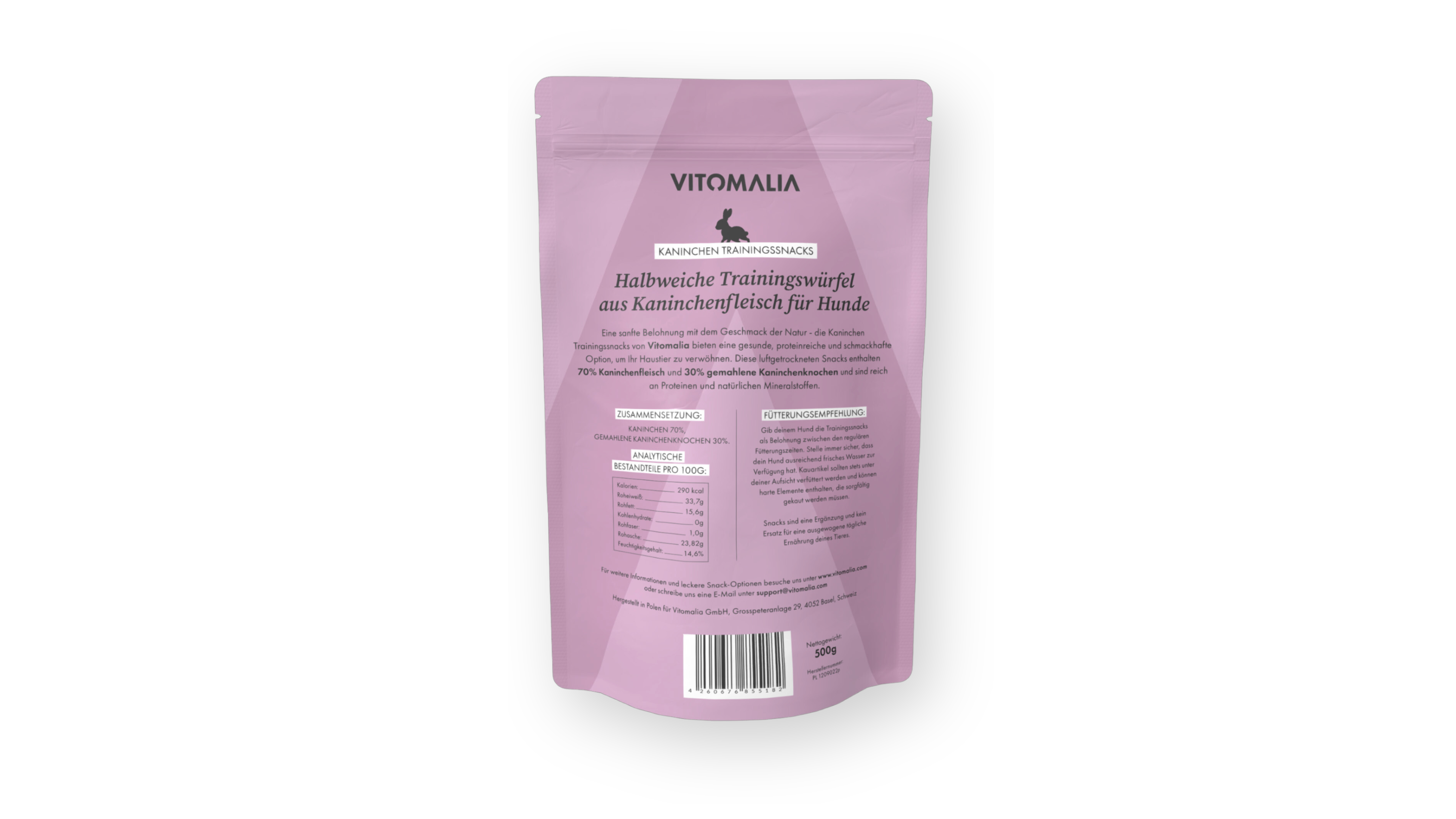 Que ce soit pour les chiots, les adultes ou les seniors - avec les Friandises d'entraînement Vitomalia, tu récompenses de manière claire, consciente et de qualité. Entraînement avec système, récompense avec responsabilité.